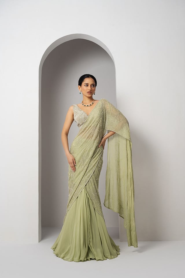 The collection showcases hand embroidery, speaking volumes about the vital role of artisans in its creation. Charu tells us, “We collaborated with local artisans for Azura. Their craftsmanship shines through in the intricate embroidery and detailing, ensuring each piece not only showcases their artistry but also supports traditional techniques and livelihoods.”