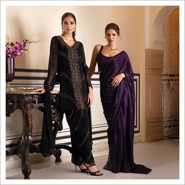 The festivities have brought back the Firefly collection at Nicobar and this season the label’s designers drew inspiration from the ‘Bride of the Rain,’ an image of a Saharan wedding procession where women sing to the rain god, seeking respite for their parched land. Each ensemble in the edit is a tribute to the desert’s beauty with a touch of Jaipur’s artistry. INR 2,750 onwards. Across stores.