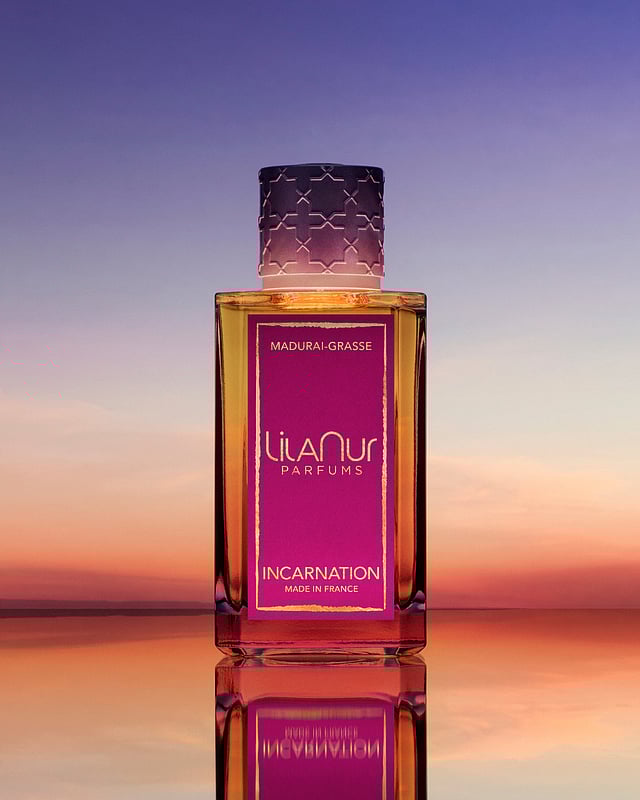 Incarntion by LilaNur Parfums celebrates the romance of India through French perfumery. This luxurious chypre fragrance, blending jasmine, rose, incense, and patchouli, captures the essence of festive elegance. A perfect gift for perfume lovers.