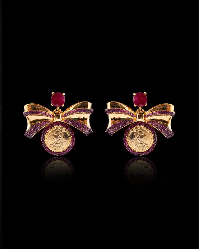 Treasure the magic of the season with Treasures by Tiara’s Ruby Studded Bow Earrings. This stunning piece, featuring vibrant rubies set in gold, adds festive flair and timeless elegance to any outfit. These earrings are the perfect accessory for your holiday celebrations.