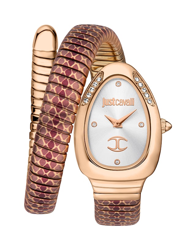The Pelle Solo Women's Watch from JUST CAVALLI boasts a radiant rose gold colour case and sleek silver dial, exuding refined charm. The rose gold metal bracelet adds a luxurious touch, while the Seiko Movement VJ20 ensures precise timekeeping. With 2-hand functionality and water resistance up to 3 ATM, this watch is both practical and elegant.