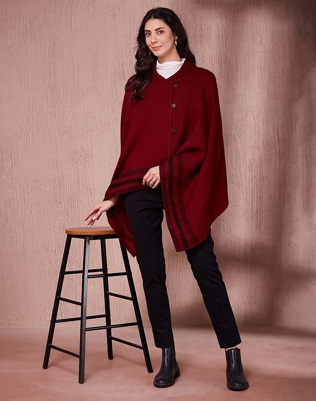 Say goodbye to last-minute outfit stress with Fabindia’s Maroon Wool Woven Wrap. Ideal for office parties or cozy brunches, this chic piece adds a touch of elegance to your look.