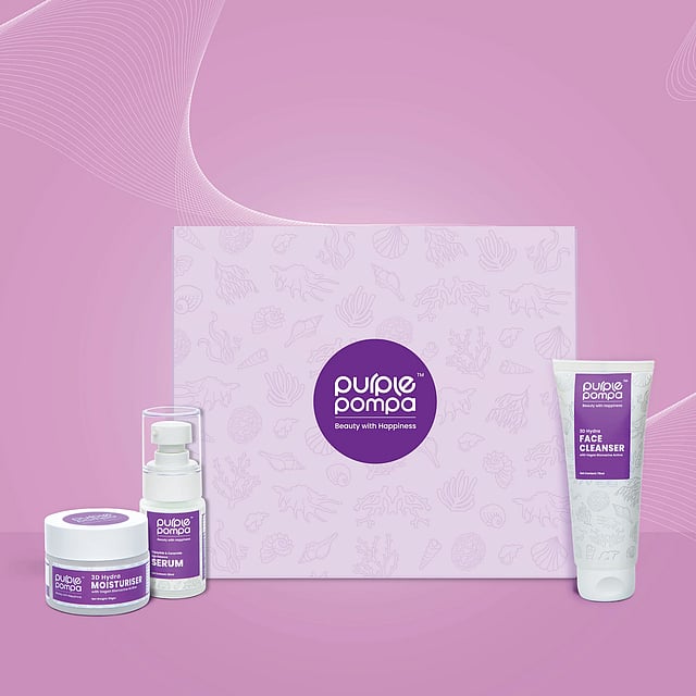 Purple Pompa introduces the ultimate festive delight – the Happy Box, a thoughtfully curated skincare gift set perfect for your loved ones. This set is designed to add an extra glow to the holidays. What's Inside the Happy Box? 3D Hydra Face Cleanser: Gently cleanses while delivering age-balancing properties. Moisturiser: Enriched with Vegan Biomarine Actives for deep hydration and skin nourishment. Night Repair Age Balance Serum: Formulated with Tripeptides, Minerals, and Ceramides to reduce fine lines and wrinkles.