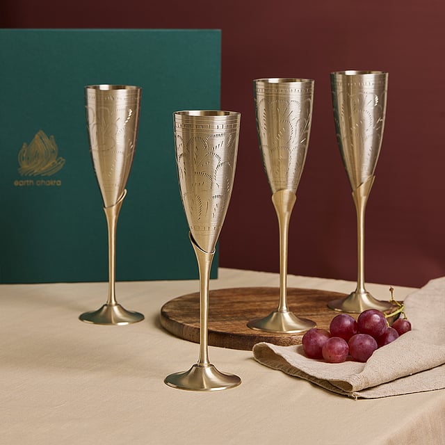 Amala Earth Concept Store’s Champagne Flute Set of 4 brings traditional Ulchai handwork into your holiday gatherings. With a unique screw mechanism for easy cleaning, these glasses add elegance and functionality to any celebration.
