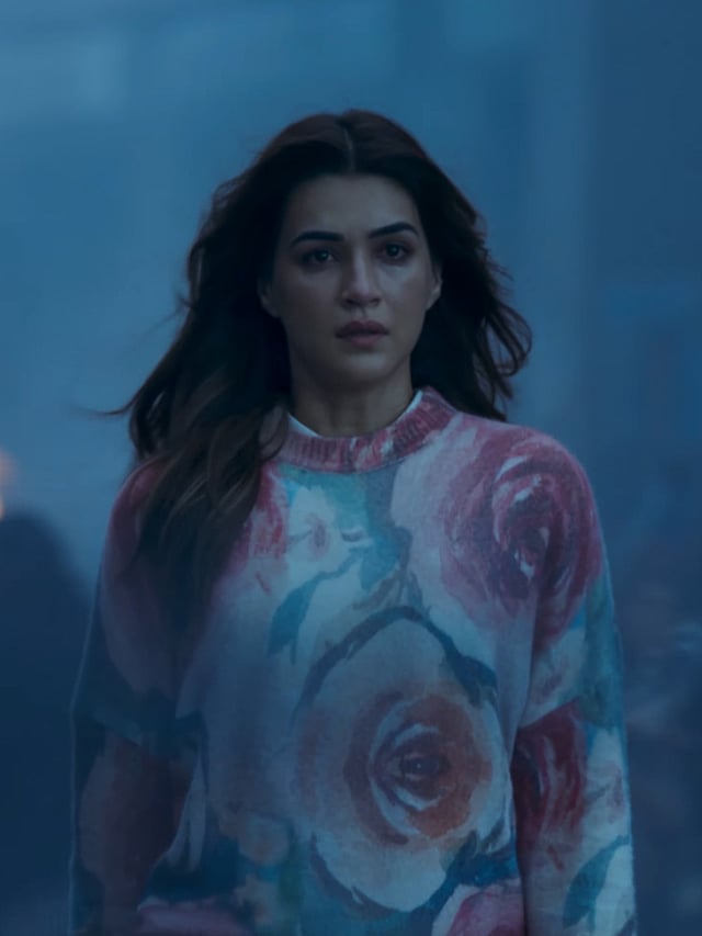 In Tere Ishk Mein, Kriti Sanon is seen wearing a dusty, floral sweater from Rareism that perfectly complements her character's subtle yet striking personality. The soft, muted tones of the sweater bring a sense of warmth and approachability, while the delicate floral details add an unexpected charm. The combination of these elements creates a look that is both humble and haunting, capturing the depth of her character's emotions and the complexity of her journey in the film.