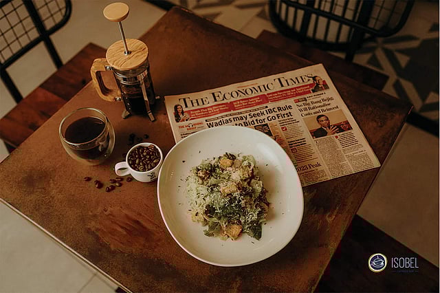 A boutique café and hub nestled amidst Jayanagar’s verdant surroundings, Isobel boasts a cozy, elegant and beautiful atmosphere, characterised by minimalist chic décor — white walls, wooden furniture, green plants and pink flowers. With both indoor and outdoor seating reminiscent of Parisian street cafés, it’s ideal for work or leisure. The diverse menu spans baked treats, continental dishes, salads, sandwiches, burgers, pizzas, pasta and a variety of beverages, including the recommended Cappuccino, Passion Fruit Smoothie, Fresh Farm Pizza, Grilled Chicken Salad and Garlic Seasoned Bread. Meal for two:₹700 onwards. At Jayanagar.