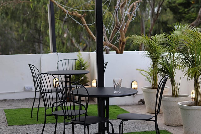 The 60-seater also offers table-top foosball and board games, stocked up beside a beautiful glass art that has tiny boxes filled with bright coloured paint, making for a great spot, especially during sunset.
