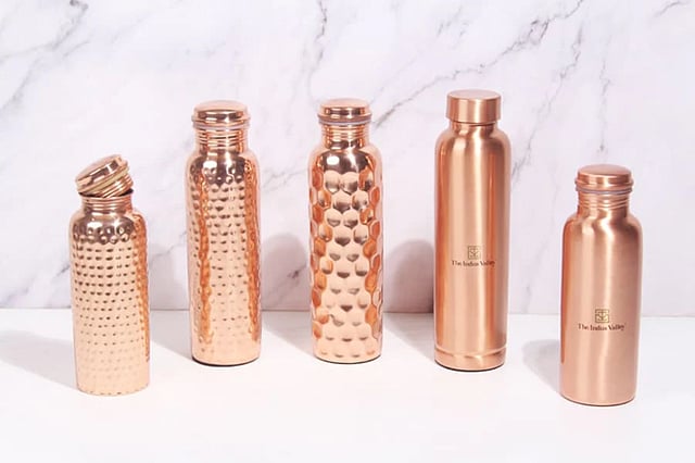 Using copper bottles to store water is beneficial as copper, known for its antimicrobial properties, can purify water by killing harmful bacteria. Additionally, storing water in copper bottles allows essential minerals to seep into the water, supporting bodily functions such as digestion and immune response. Unlike single-use plastic bottles, copper bottles are reusable, eco-friendly, durable and stylish, making them a practical and sustainable choice for daily hydration. Try using the copper bottle from Studio Coppre. INR 2,500.