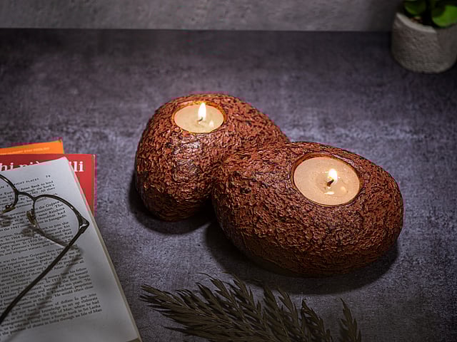 The collection from Ashnam features exquisite pieces from polyresins, such as the stone-fin ish tea light holders. Each piece is handcrafted and hand-painted, offering a touch of tranquil lity to festive celebrations. These artefacts blend the warmth of tradition with a modern aesthetic, providing your home with a unique way to adorn living spaces during this festive season.