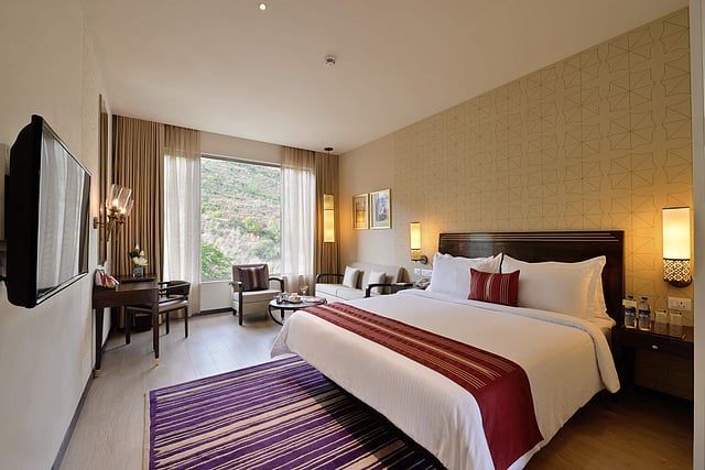 Upon entering the property, we couldn’t help but notice how neatly the structure blends with the majestic hills in the background. Indeed the hotel is built at the foothills of a short hill range, which is about the only view worth looking for in the area. The rooms (around 121, including suites) are adequate and functional and provide just about everything that is expected from a star hotel, including a super comfy bed, of course. We are not really sure if having a hill in a close range as a view from the room will impress everybody, but we were pretty happy with it, considering that we would be seeing a lot of them in the following days of our stay there.