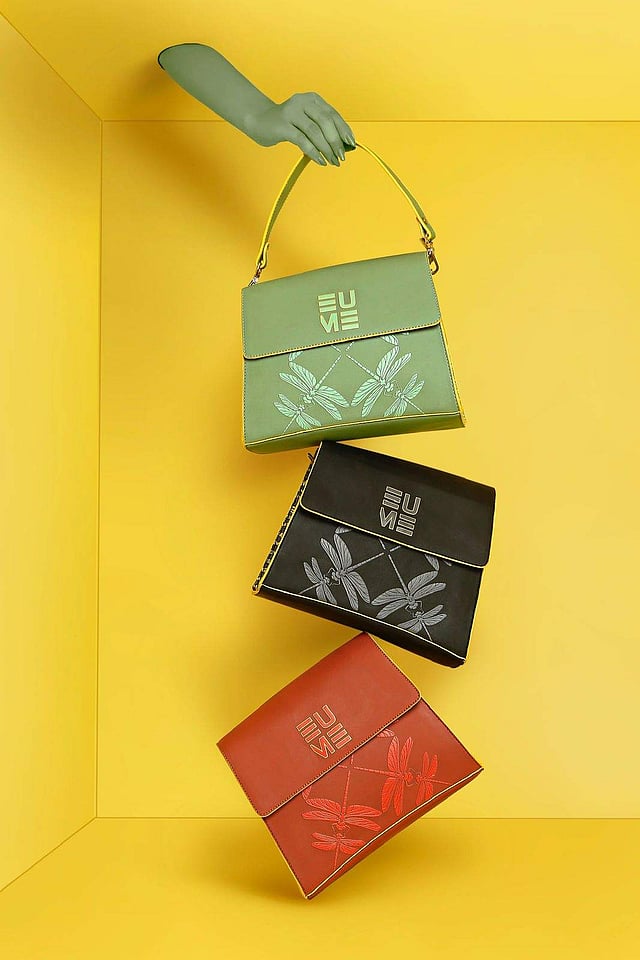 These elegant designer vegan handbags by Eume's new collection are perfect for today’s fashion-forward woman. The bags are sleek and display a flawless blend of high fashion aesthetics and bold hues. The bags are monogrammed with Dragonfly motifs and embellished with the Eume logo, which represents metamorphosis and happiness. INR 2,899- INR 7,999.