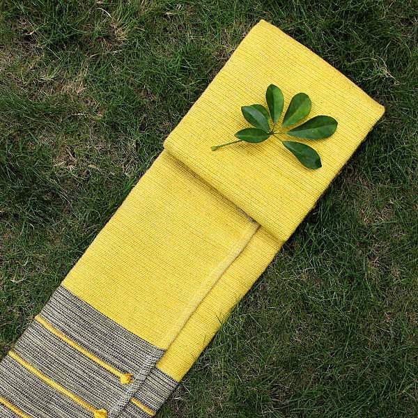 list of 30 herbs including turmeric, triphala and neem —infused within a single mat, says Yogastra founder Anupam Mukerji. “The idea is that this process will help with internal cleansing and stress relief every time it is used,” says Anupam, an avid yogi himself. This three-year-old Mysore-based brand works in collaboration with the Cooperative Society of Weavers in Kerala and uses natural dyes as well as gets their cotton fabric GOTS (Global Organic Textile Standard) certified. Anupam tells us that the making