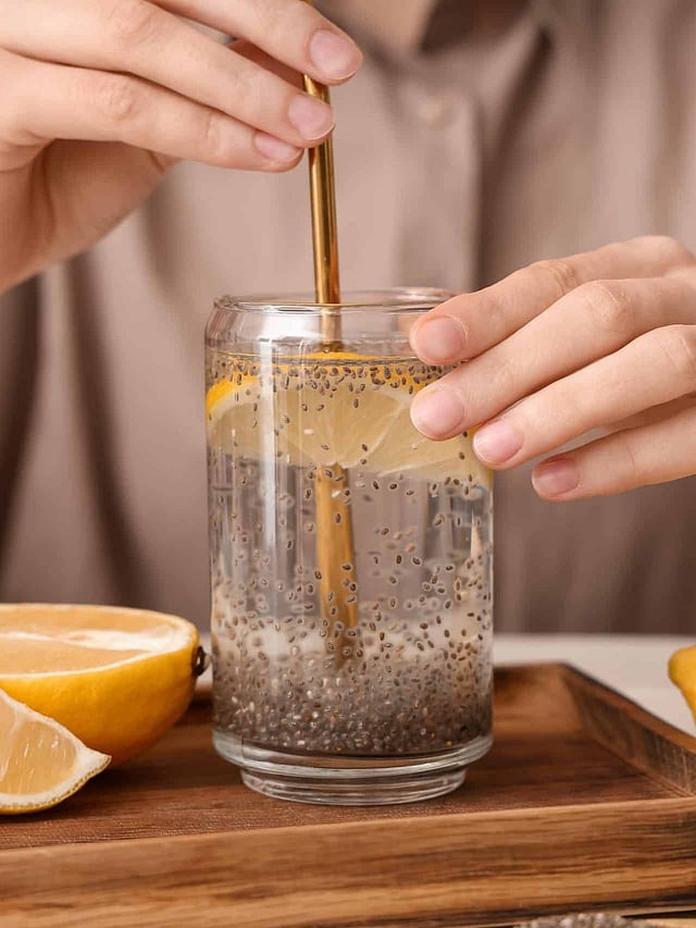 Chia seed water: If you are worried about dry and dull skin during winters, drink a glass of overnight chia seeds soaked water for a glowing skin. This drink contains ceramides and fatty acids which helps hydrate the skin and improve skin health. It also protects you from sun damage.